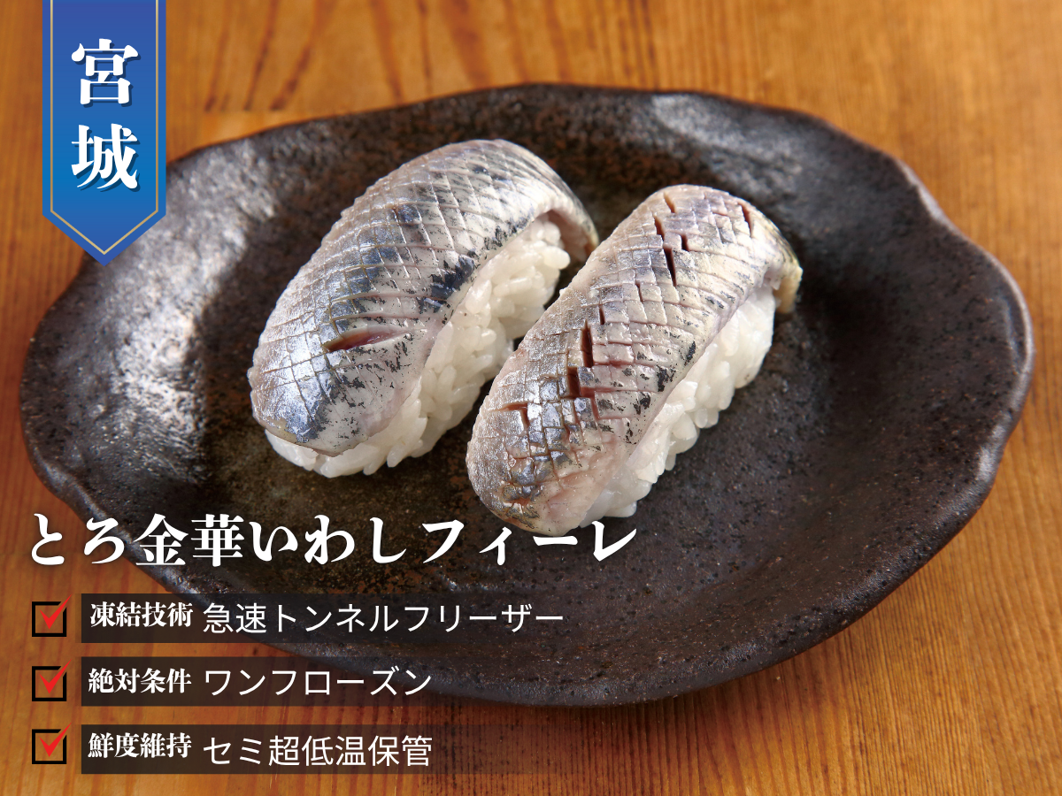 宮城県金華山沖で水揚げされた鮮度抜群の真いわし。一年で最も脂のりが良いとされる1月〜2月上旬に漁獲されたものに限定しています。ここ数年は6月7月の入梅時期のイワシよりもこの時期の方が脂がのっています。